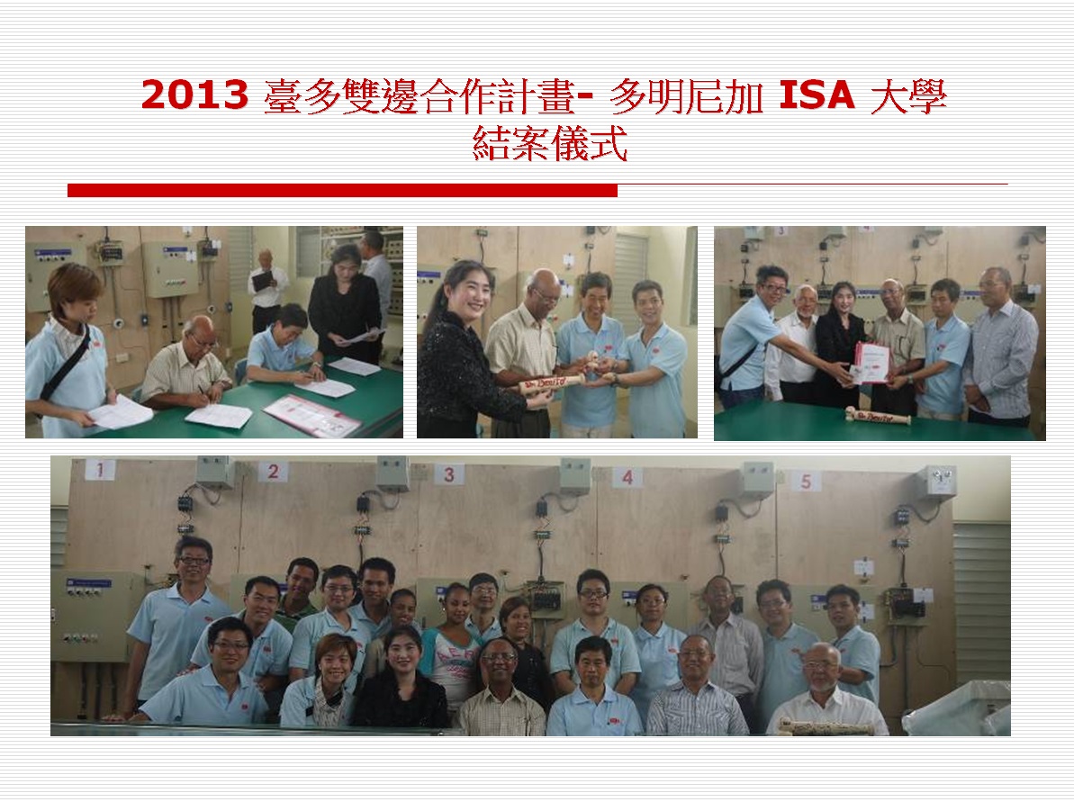 2013 Plan de Cooperación entre la Universidad ISA- Rep. De China (Taiwán) / Prov. Santiago , Rep. Dominicana Ceremonia de cierre del proyecto