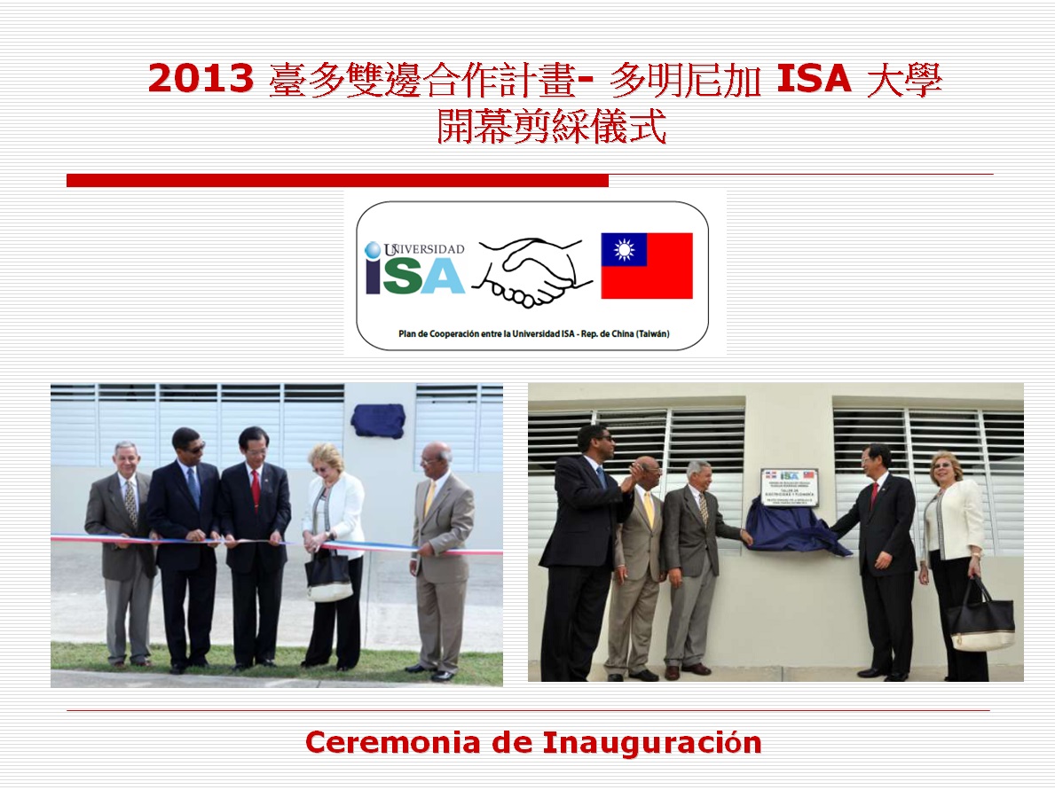 2013 Plan de Cooperación entre la Universidad ISA- Rep. De China (Taiwán) / Prov. Santiago , Rep. Dominicana Ceremonia de Inauguración