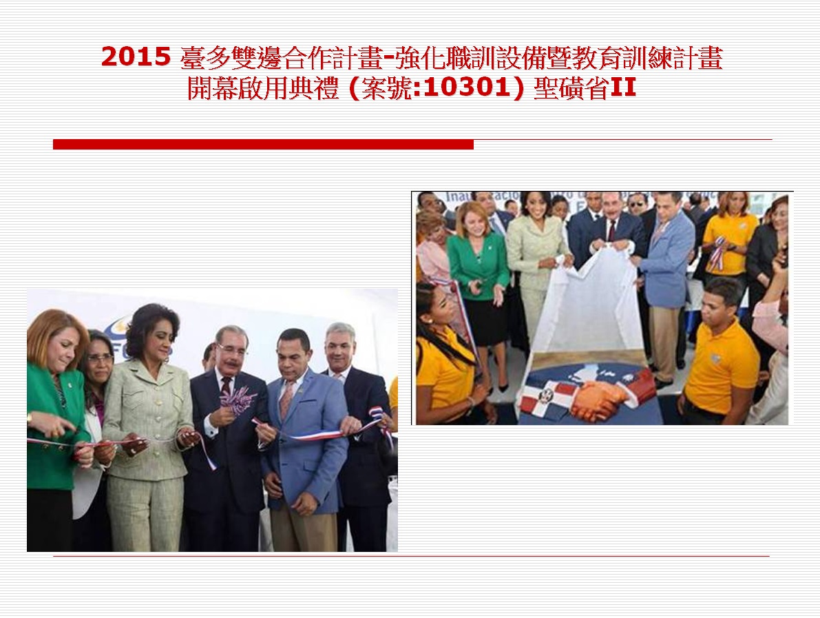 2015 Modernización de segunda fase de centros tecnológicos INFOTEP -Taiwán –Rep. Dominicana (DUO:10301) -San Juan de la Maguana Inauguración