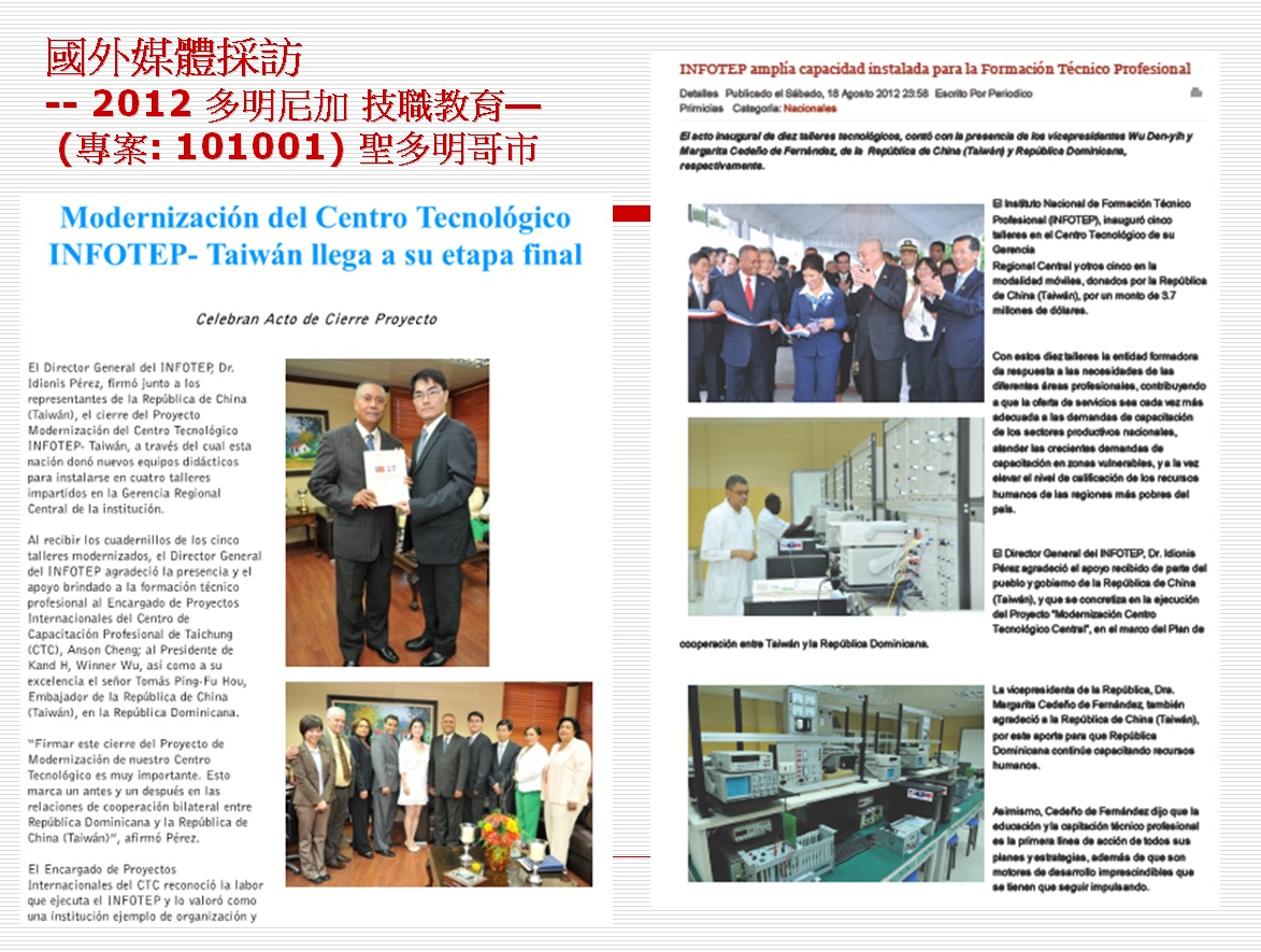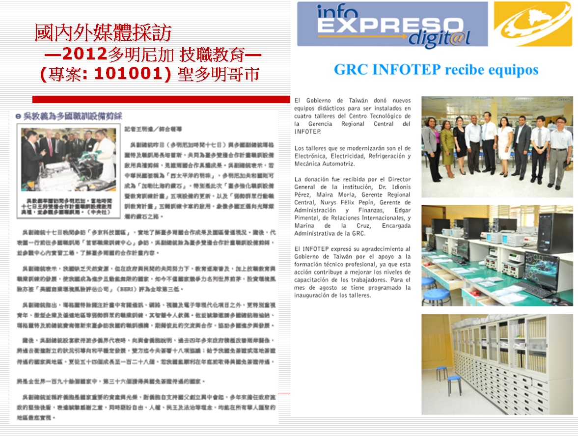 Entrevistas a nivel Nacional e Internacional — 2012 República Dominicana Educación Técnica y vocacional, Sto Domingo (DUO: 101001)