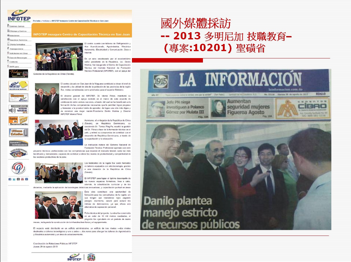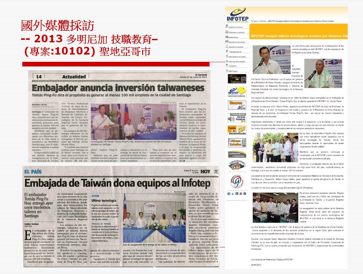 Entrevistas a nivel Nacional e Internacional -- 2013 Rep. Dominicana Educación Técnica y vocacional , Santiago ( DUO: 10102)